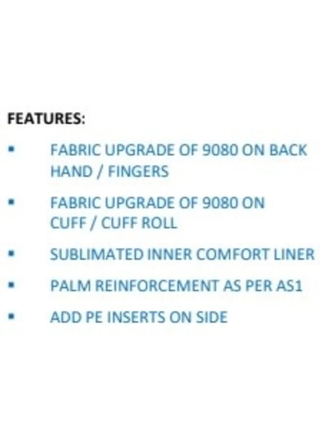 | Fingers/Backhand | PE foams and PE inserts for lightweight construction and elite level protection using D3O® impact and shock absorption technology (9080). Added PE inserts on side wart |