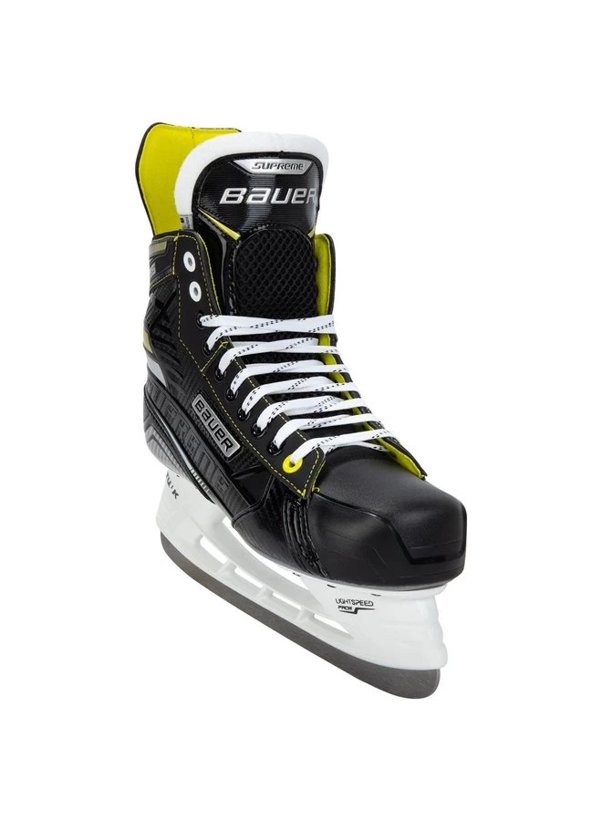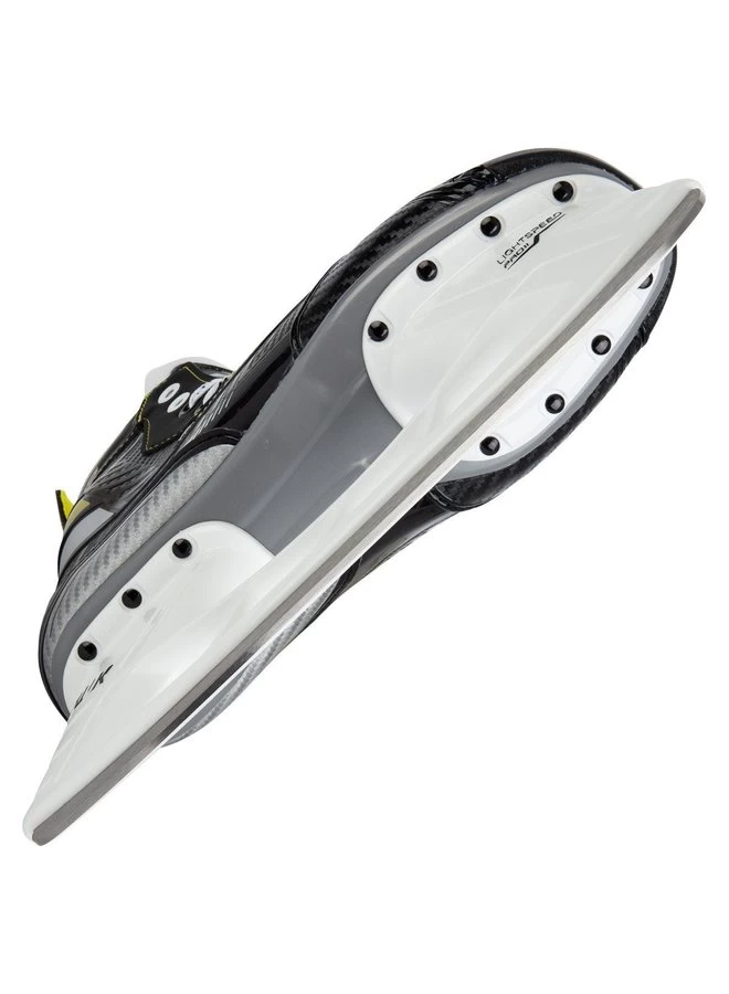 The Supreme S35 skate is for the rec hockey player. A 3D POLY CARB QUARTER offers added flex, step-in comfort, and visual richness. A 30 ounce Tongue with mesh metatarsal guard provides additional comfort and the “S” STAINLESS STEEL blade offers great value and durability. It’s being offered in traditional lengths and D Width only. Its FLEX RATING comes in at 55, a more forgiving boot for the recreational skater.