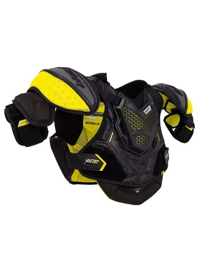 AMP technology gives the shoulder cap and split bicep a construction where the protection always follows your shoulder joint without any restriction, whatever your position on the ice.