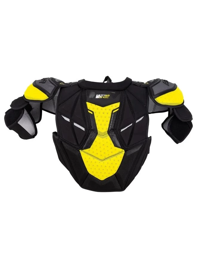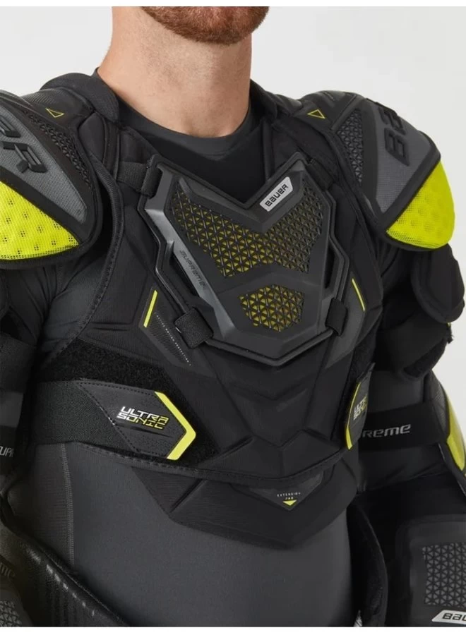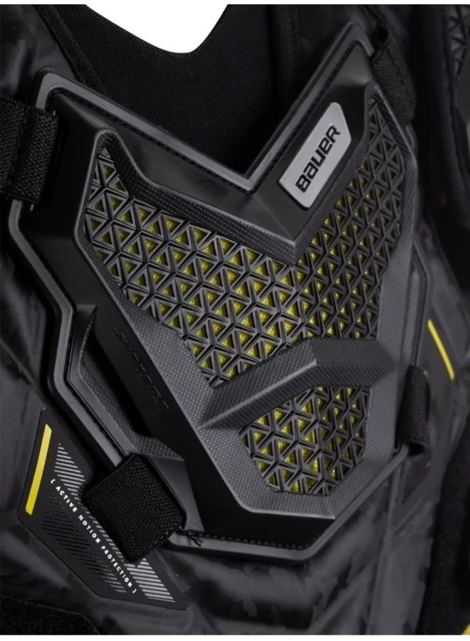 AMP technology gives the shoulder cap and split bicep a construction where the protection always follows your shoulder joint without any restriction, whatever your position on the ice.