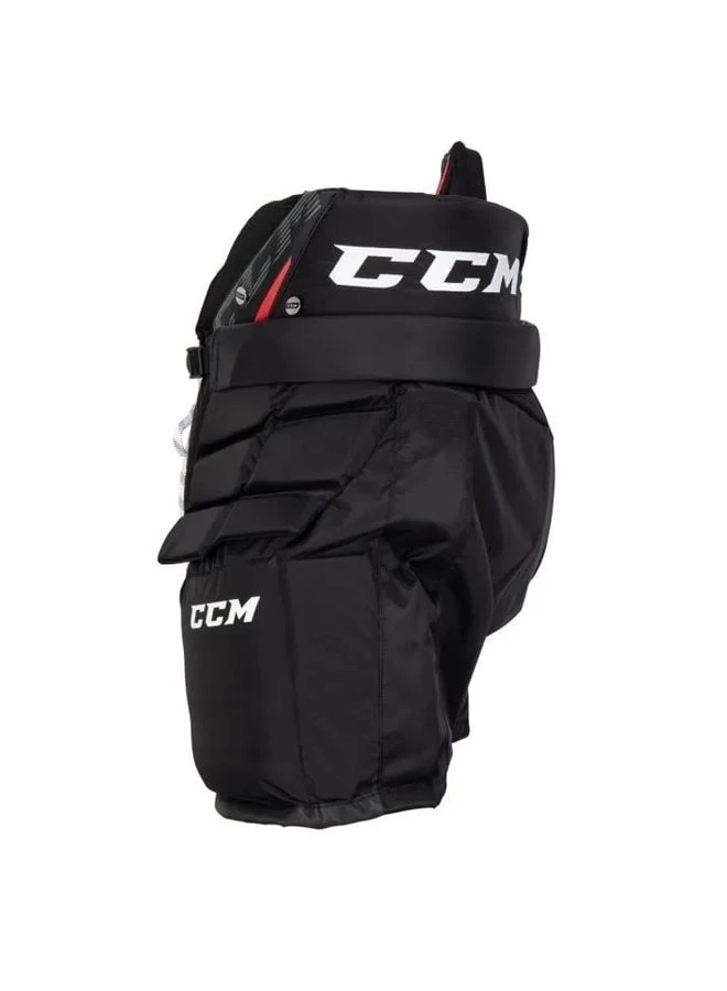 Strategic stretch zones which allow the goaltender uninhibited mobility to make any save necessary. Along with maximum mobility, the top of the CCM 1.9 pant allows for easy tucking of the chest protector with a wider top. If you do not tuck your chest, the top can easily be cinched closed to provide a snug fit.