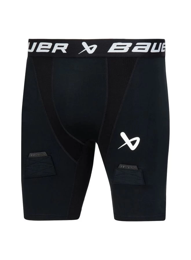HeiQ Fresh technology prevents odor-causing bacteria so you can wear more and wash less Mesh in strategic areas to provide ventilation Flatlock seams reduce chafing Locker loop at inside of back waist Reinforced hook and loop sock adjusters with Hypalon tabs Protective cup included Soft-touch logo waistband