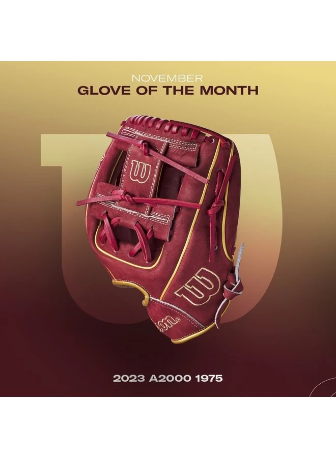 Velvety smooth. November’s GOTM takes Brick Red Pro Stock® Leather players love and buffs the surface to create a rich, soft finish. Fashioned with Metallic Gold binding and dual welting, this 11.75″ A2000® 1975 brings a whole new definition to flashing the leather.