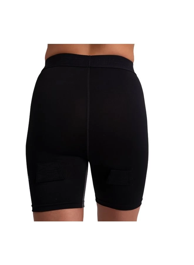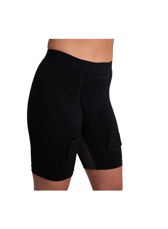 Strategic mesh inserts add ventilation; Reinforced 3-D hook and loop sock adjusters; Locker loop at the inside back waist; Ergonomically engineered foam insert for player comfort and protection