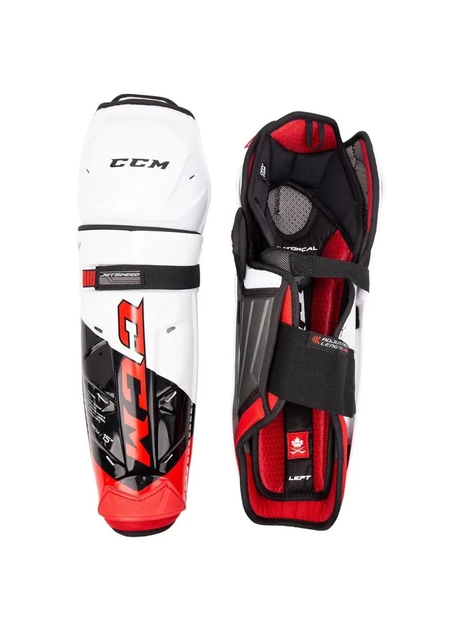 Staying close to the body thanks to their anatomical design and snug fit, the JETSPEED FT4 PRO hockey shin guards offer optimized protection. Easy to adjust and made of resistant but lightweight material, they’re the key to next-level equipment confidence.
