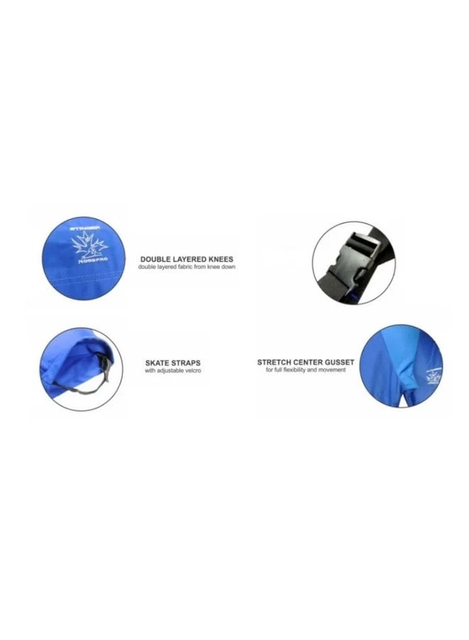 Made from a heavy-duty polyester material, the pants are strong, come belted and are double layered from the knee down.
