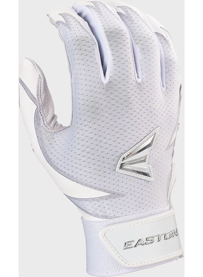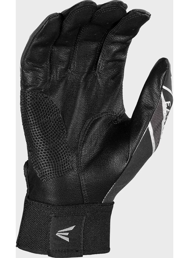 Get a grip with Easton’s slowpitch pro batting gloves. The palm is built with a durable tackified, smooth goatskin leather with reinforced digital leather below the pinkie for extra durability. While the back of the glove combines a Lycra back fused with silicone for the perfect balance of flex and support. In addition, the flexible elastic cuff with bar tack stitching provides the perfect fit around the wrist, while the Bio-Dri wrist liner provides added comfort. These batting gloves are perfect for any slowpitch player. Get your Easton slowpitch pro batting gloves today!