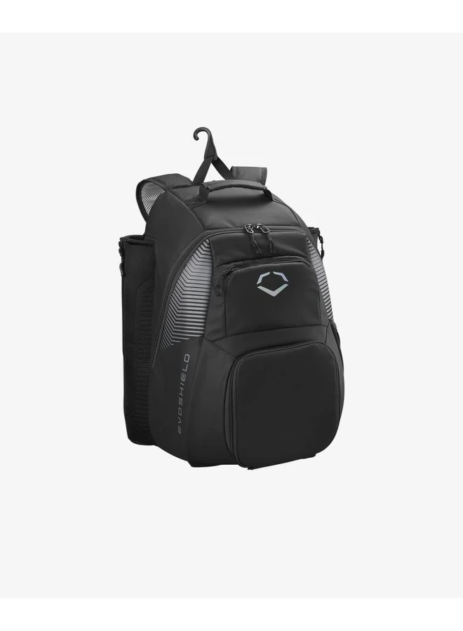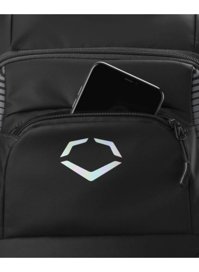 Carry all the equipment needed for practice or game day in the EvoShield Tone Set Backpack, a water resistant bag engineered to keep your gear organized in any elements. Stash your batting helmet, fielding glove and other gear in the large main compartment, then zip your phone in the fleece-lined valuables pocket when it’s time to get to work. Equipped with neoprene bat sleeves, this pack makes it easy to carry two bats to the cages or practice fields. Use the integrated fence hook to secure your bag in the dugout so you can easily access all your equipment on game day.