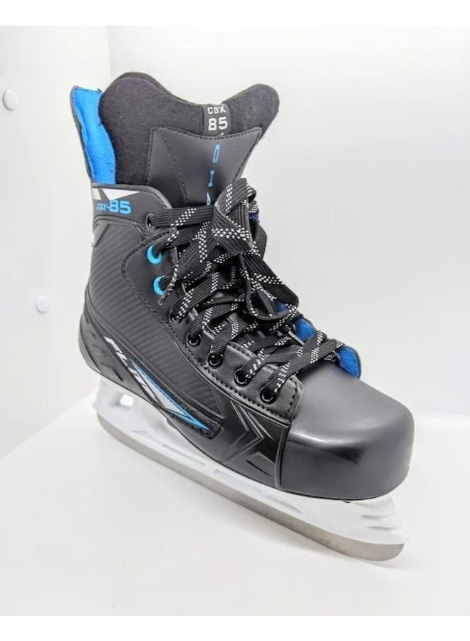 Flite Hockey takes foot protection seriously in its skate design. A metatarsal protection cover is inserted in the tongue of the boot, when the boot is laced the metatarsal acts like a protective dome over the player’s foot. This transfers energy from impact across the tongue of the skate providing maximum protection from foot injury. Super soft and comfortable inner liner. Stainless steel blades. Anatomical plastic toe cap.