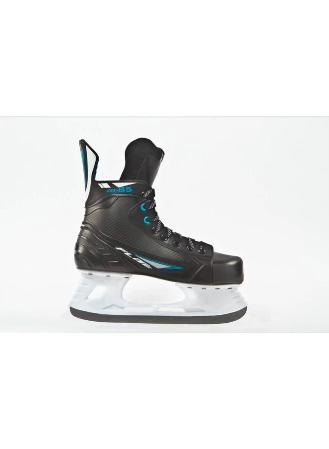 Flite Hockey takes foot protection seriously in its skate design. A metatarsal protection cover is inserted in the tongue of the boot, when the boot is laced the metatarsal acts like a protective dome over the player’s foot. This transfers energy from impact across the tongue of the skate providing maximum protection from foot injury. Super soft and comfortable inner liner. Stainless steel blades. Anatomical plastic toe cap.