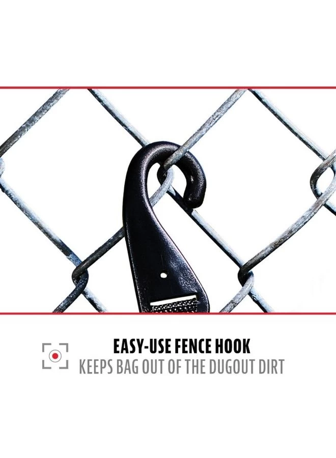 - EASY-USE FENCE HOOK – Convenient j-style hook allows bag to hang on dugout fence for easy accessibility