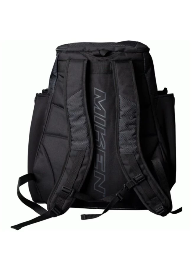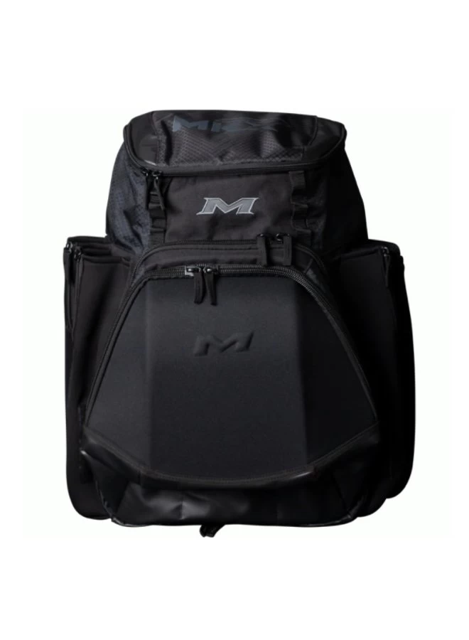 The all new Miken XL Backpack features: 4 zippered neoprene bat sleeves, a durable “J” style fence hook, 2 fleece lined pockets in top valet tray (for phone, accessories, etc), Glove storage, Molded front pocket that converts to shelf, Easy to clean tarpaulin bottom, and a Daisy chain for external batting glove storage.