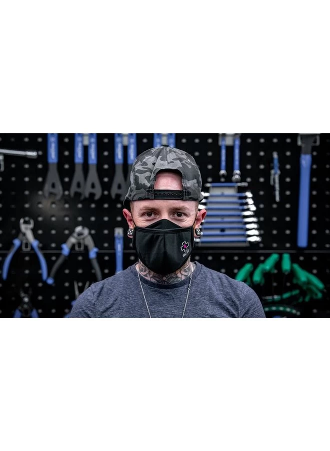 A non-medical, black reusable face mask that can be washed up to 20 times! Three layers of protection keeps you safe from bacteria, while looking rad.