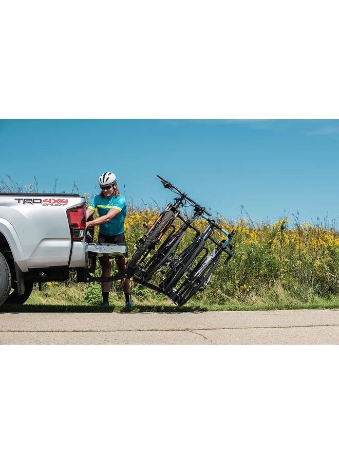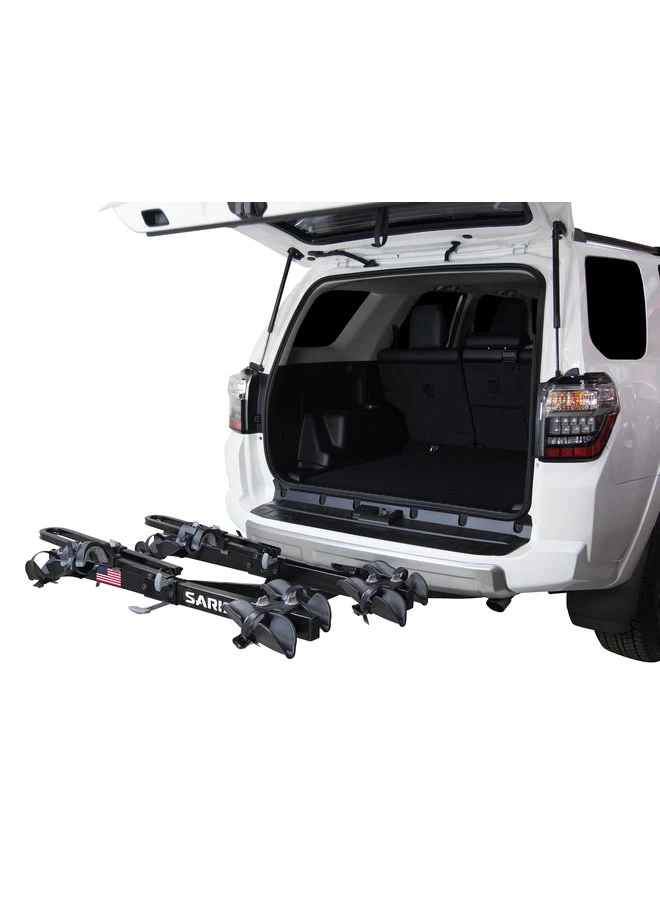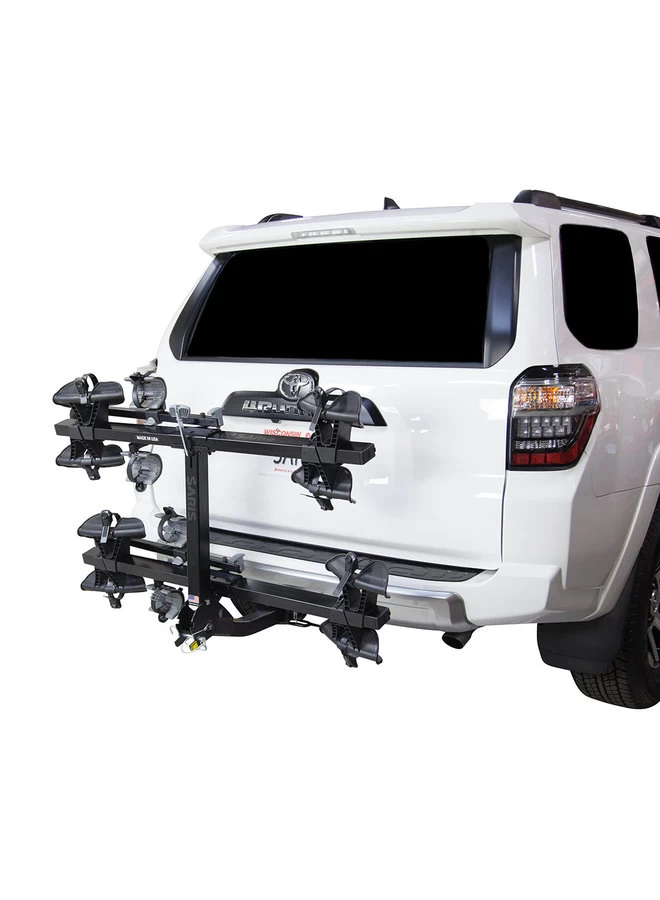 - Carries up to 4 bikes (60 lb/bike in trays closest to the vehicle; 35 lb/bike for second two trays).