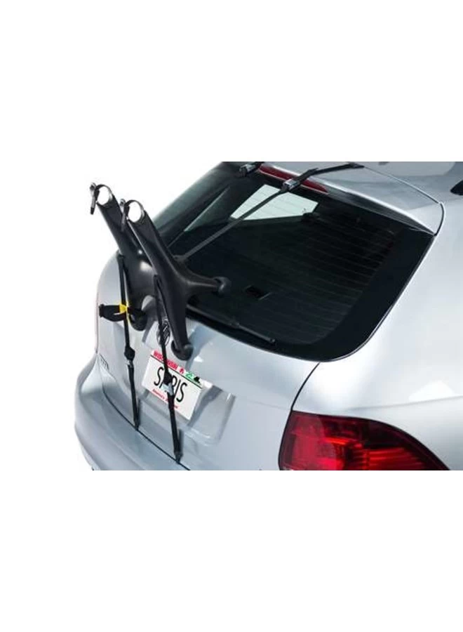 The first and only 1-bike car rack with zero mechanical frame adjustments. Just place it, tighten the straps, secure your bike and go.