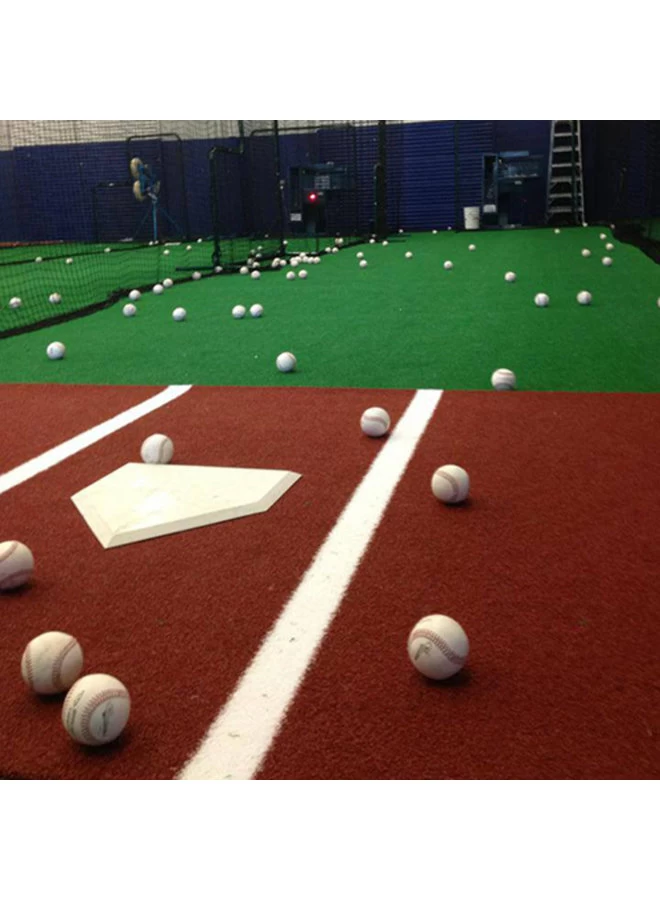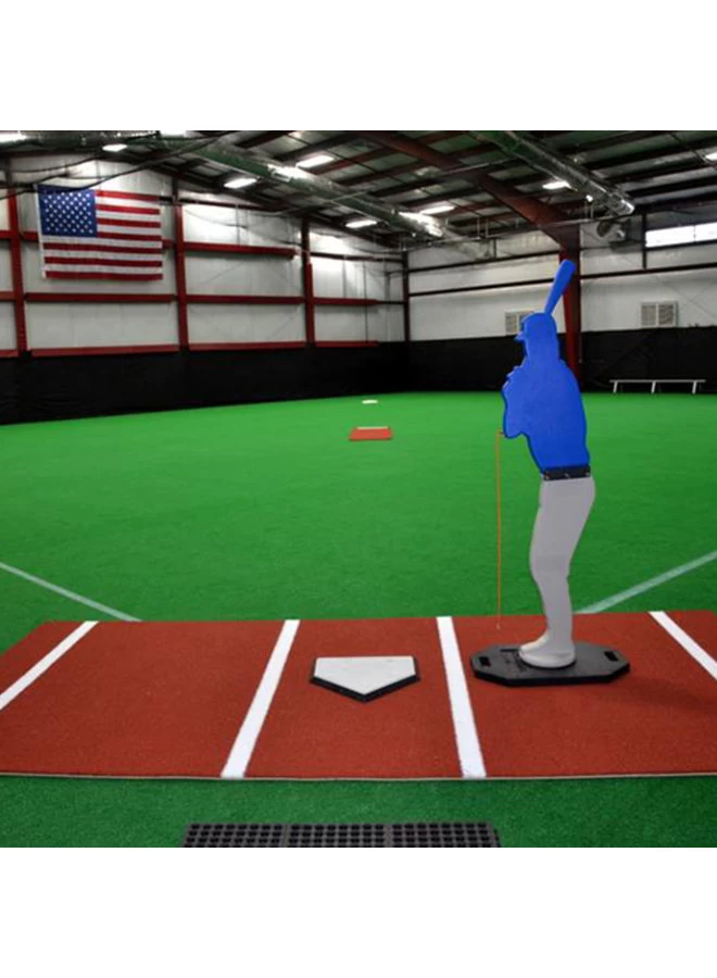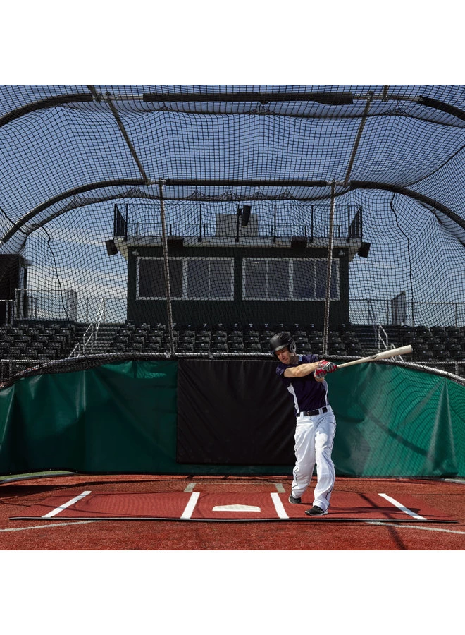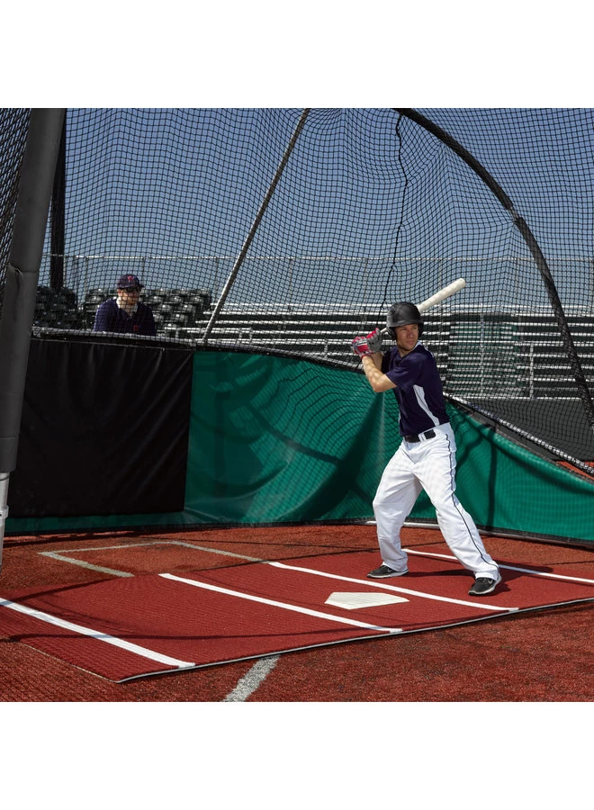 The Batting Mat Pro is the perfect batting mat for batting practice or pregame warm-ups. Can be used for both indoor and outdoor batting cages, as well as on the field for batting practice. This is a portable batting mat that can be easily rolled up and moved. Comes with a 5mm foam backing for added durability. Made with inlaid white turf lines that will not fade, flake or chip since it is built into the batting mat. Comes with a throw-down home plate, allowing the batting mat to be rotated for even wear – extending the life of the batting mat which can also be easily stored. The 12′ x 6′ batting mat is perfect for baseball and softball teams and great for protecting your gym floor when practice needs to move indoors. Our baseball mats dramatically reduce the maintenance around home plate. Clay color batting mat with inlaid white lines.